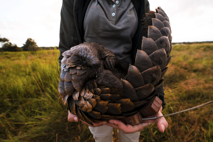 While the 24 to 100 Lions project was the focus of our return trip to Coutada 11 this June, we were also there to examine some other incredible conservation work happening there. If you're not familiar with the animal pictured above, don't be alarmed --- many aren't. It's a pangolin, and sadly, this endangered species is the most-trafficked animal in the world. Estimates indicate that over a million pangolins have been poached and trafficked over the last decade